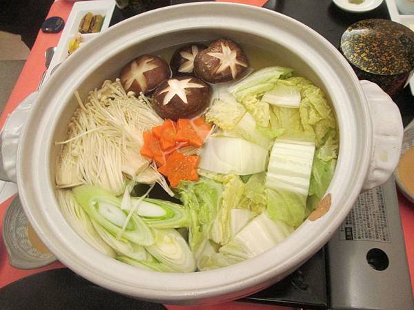 接著就先將野菜放入鍋中等待水滾,這時讓我門先看一下桌上其他的餐點