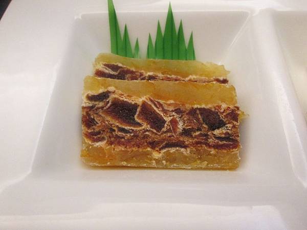 外層金桔,內層是龍眼乾的綜合開胃小菜,酸中帶甜,但是龍眼味非常重不喜歡的人會非常不喜歡