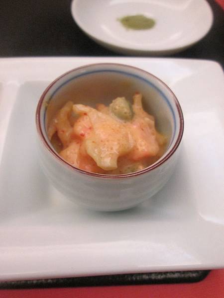 外面常見的開胃小菜之一,明太子混著花枝,這邊多加了些豆子讓口感更加豐富,十分的清爽好吃