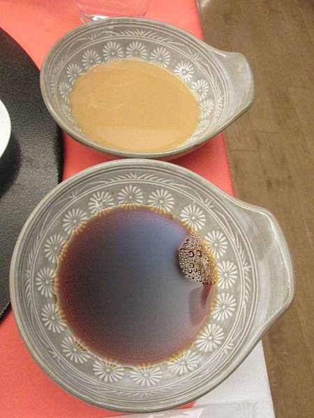 沾醬有兩種,胡麻醬是用來沾肉的,酸桔醬是用來沾菜的,當然也可以亂沾