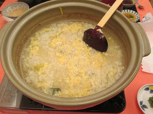 日本當地的粥煮法和我們在台灣常見的不太相同,他們不喜歡煮到太爛,基本上沒有等湯汁收乾就請我們食用了
