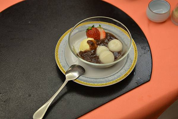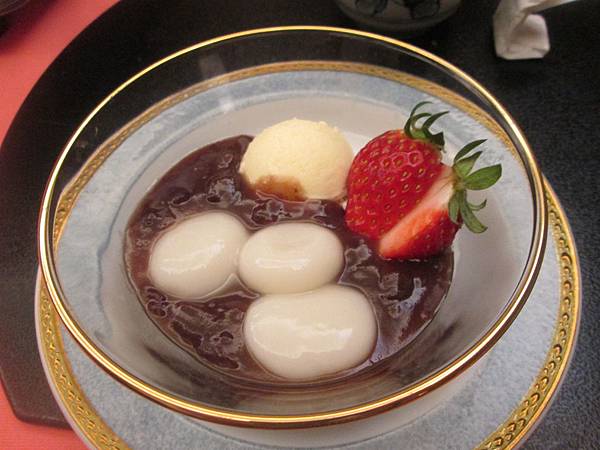 最後來有附上甜點,紅豆湯圓+草莓香草冰淇淋